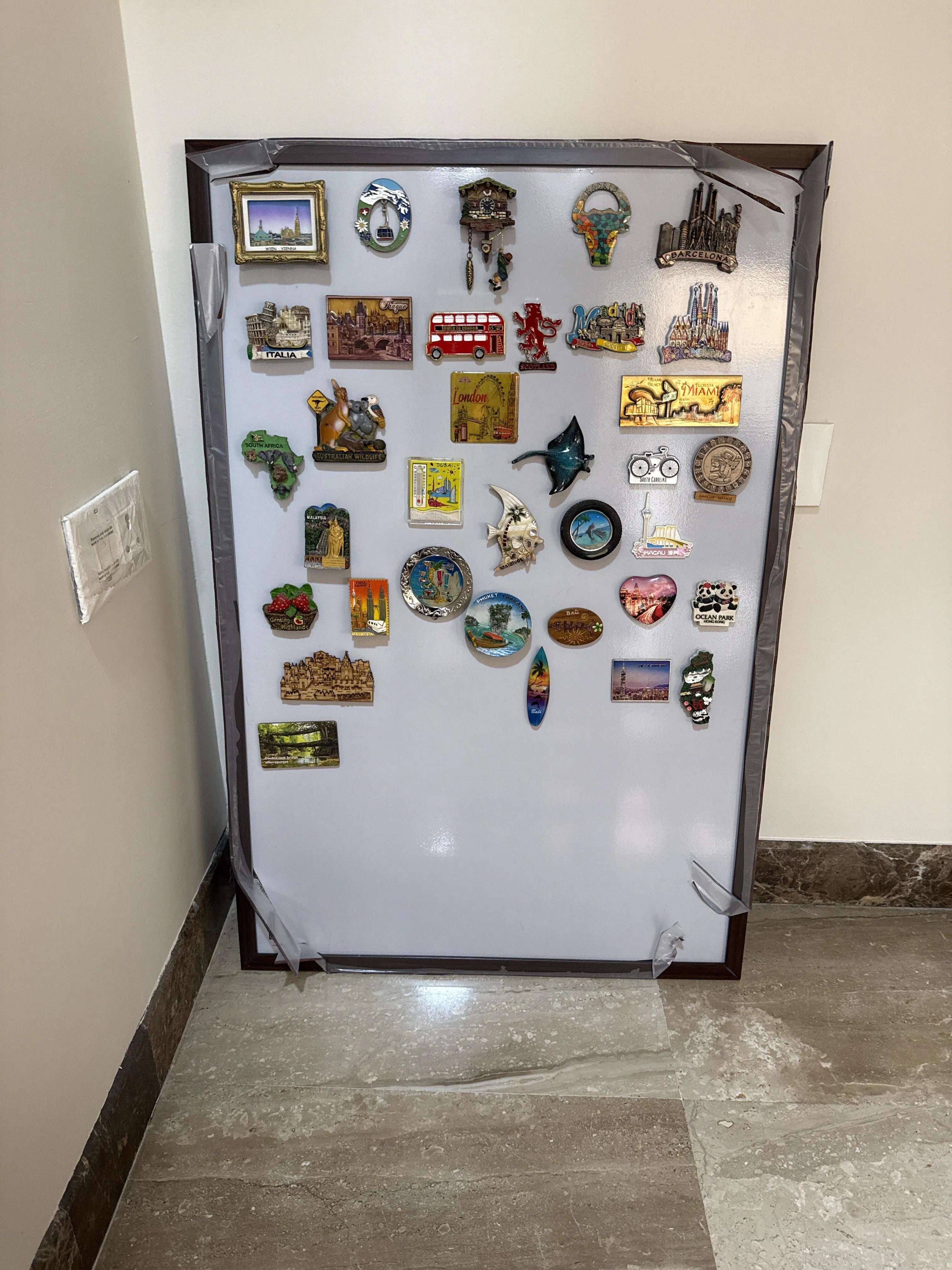 • Combo of magnetic board, magnetic buttons, dry-erase markers, and sticky notes