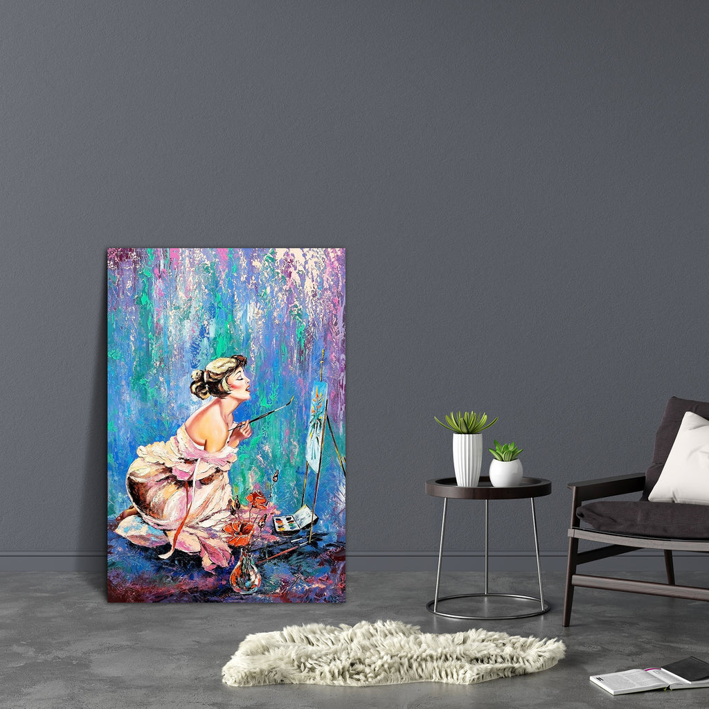Girl Drawing A Picture Canvas Painting Synthetic Frame-Paintings MDF Framing-AFF_FR-IC 5000363 IC 5000363, Art and Paintings, Botanical, Drawing, Floral, Flowers, Gouache, Nature, Paintings, Russian, girl, a, picture, canvas, painting, synthetic, frame, oil, art, artist, background, brushes, draws, easel, interior, museum, paints, palette, press, reproduction, russia, woman, artzfolio, wall decor for living room, wall frames for living room, frames for living room, wall art, canvas painting, wall frame, sce