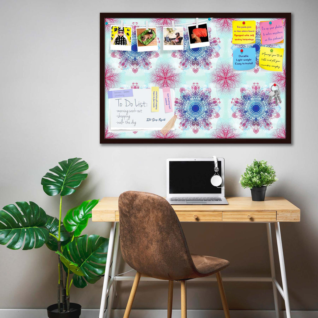 Ethnic Blue Ornament Bulletin Board Notice Pin Board Soft Board | Framed