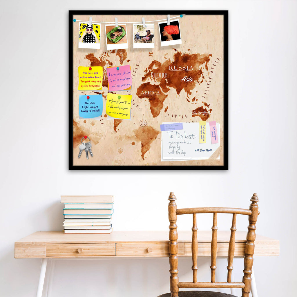 Retro World Map Bulletin Board Notice Pin Board Soft Board | Framed-Bulletin Boards Framed-BLB_FR-IC 5010039 IC 5010039, Abstract Expressionism, Abstracts, American, Ancient, Art and Paintings, Astronomy, Automobiles, Business, Cosmology, Countries, Digital, Digital Art, Drawing, Graphic, Historical, Illustrations, Maps, Medieval, Retro, Semi Abstract, Signs, Signs and Symbols, Space, Splatter, Symbols, Transportation, Travel, Vehicles, Vintage, Watercolour, world, map, bulletin, board, notice, pin, soft, f