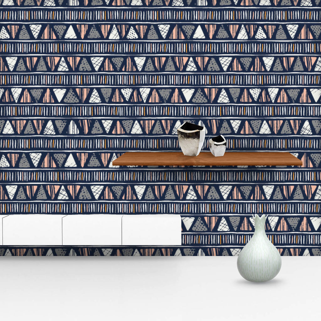 Tribal Triangles and Stripes Wallpaper Roll-Wallpapers Peel & Stick-WAL_PA-IC 5017008 3d, adhesive, bathroom, bedroom, furniture, home, kids, kitchen, living, non pvc, oil, panel, paper, peel, resistant, roll, room, self, sheet, stick, sticker, tiles, vinyl, wall, wallpaper, waterproof, , , ,