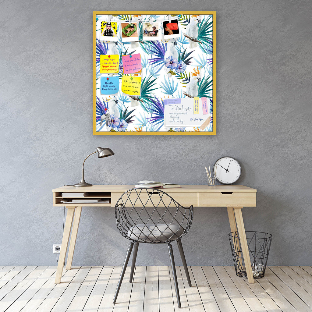 Tropic Parrot Bulletin Board Notice Pin Board Soft Board | Framed-Bulletin Boards Framed-BLB_FR-IC 5007602 IC 5007602, African, Animals, Birds, Black and White, Botanical, Drawing, Floral, Flowers, Illustrations, Nature, Patterns, Scenic, Signs, Signs and Symbols, Tropical, Watercolour, White, Wildlife, tropic, parrot, bulletin, board, notice, pin, vision, soft, combo, with, thumb, push, pins, sticky, notes, antique, golden, frame, seamless, pattern, jungle, parrots, tropics, watercolor, leaves, africa, ani