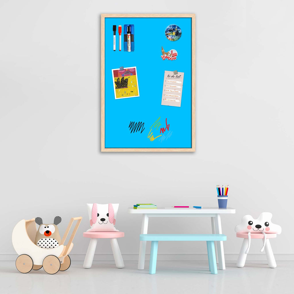 Blues & Cyans Family Deep Sky Blue Colour Framed Magnetic Dry Erase Board | Combo with Magnet Buttons & Markers-Magnetic Boards Framed-MGB_FR-IC 5017304 IC 5017304, Family, Solid, blues, cyans, deep, sky, blue, colour, framed, magnetic, dry, erase, white, board, includes, magnet, buttons, markers, natural, brown, frame, artzfolio, white board, whiteboard, dry erase board, magnetic board, magnetic whiteboard, small whiteboard, whiteboard for kids, whiteboard for teaching, white board 2x3, whiteboard with sta