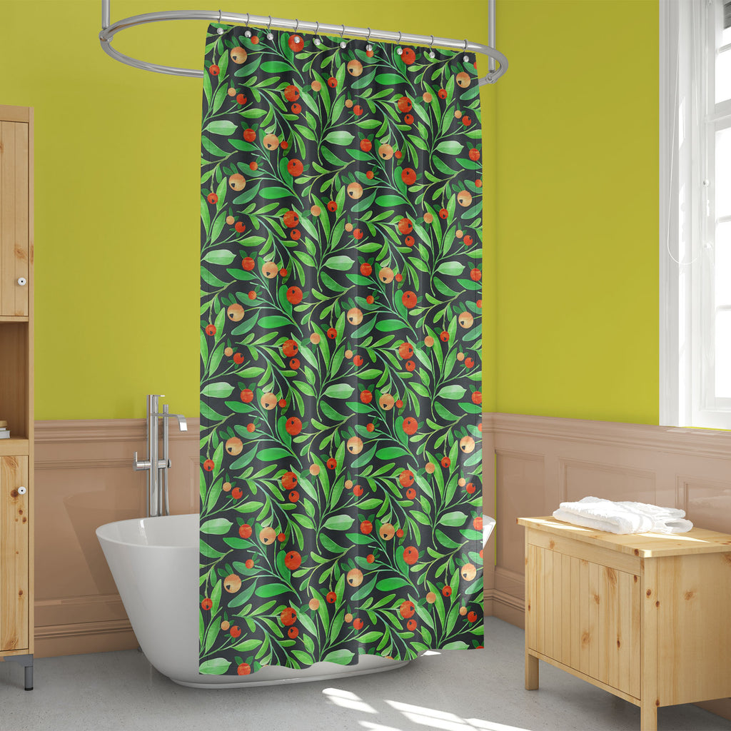Botanical Leaves D3 Washable Waterproof Shower Curtain-Shower Curtains-CUR_SH_EL-IC 5016969 108 inch, 6feet, 72inch, 7feet, 84 inch, bathroom, bathtub, curtain, custom, dark, design, eyelet, home, hotel, plastic, polyester, pvc, set of 2, shower, single, vinyl, washable, washroom, waterproof, , , ,