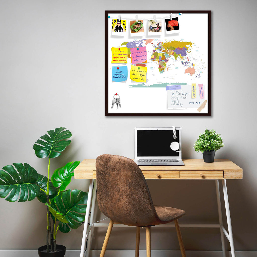 Detailed World Map Bulletin Board Notice Pin Board Soft Board | Framed-Bulletin Boards Framed-BLB_FR-IC 5009780 IC 5009780, Abstract Expressionism, Abstracts, African, American, Asian, Astronomy, Automobiles, Business, Calligraphy, Cosmology, Countries, Illustrations, Maps, Semi Abstract, Signs, Signs and Symbols, Space, Text, Transportation, Travel, Vehicles, detailed, world, map, bulletin, board, notice, pin, vision, soft, combo, with, thumb, push, pins, sticky, notes, natural, brown, frame, vector, count