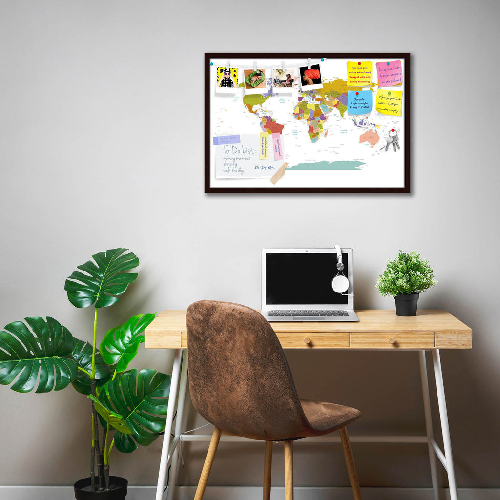 Detailed World Map Bulletin Board Notice Pin Board Soft Board | Framed-Bulletin Boards Framed-BLB_FR-IC 5009780 IC 5009780, Abstract Expressionism, Abstracts, African, American, Asian, Astronomy, Automobiles, Business, Calligraphy, Cosmology, Countries, Illustrations, Maps, Semi Abstract, Signs, Signs and Symbols, Space, Text, Transportation, Travel, Vehicles, detailed, world, map, bulletin, board, notice, pin, vision, soft, combo, with, thumb, push, pins, sticky, notes, natural, brown, frame, vector, count