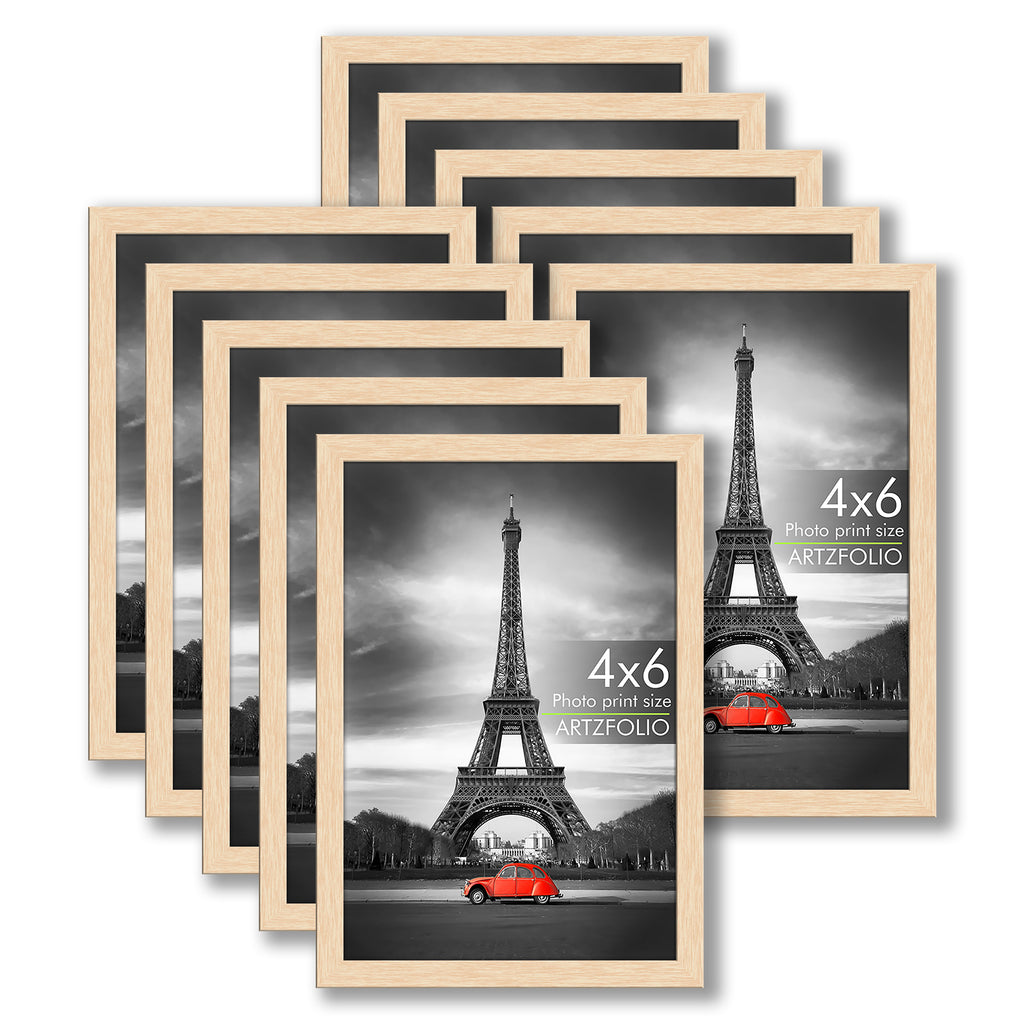 Natural Brown Frame || SIZE: 4 x 6 inch (10 x 15 cms) - 10 Units - Without Mat - Natural Brown: including 0.75 inch wide Natural Brown Frame