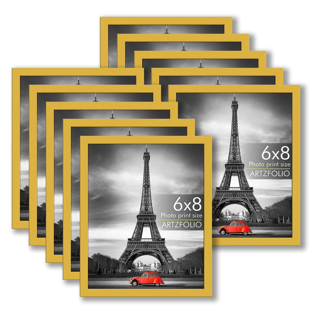 Golden Frame || SIZE: 6 x 8 inch (15 x 20 cms) - 10 Units - Without Mat - Golden: including 0.75 inch wide Golden Frame