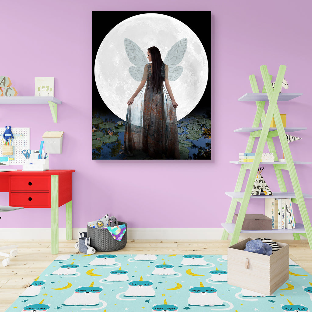 Water Fairy Walking Into The Moon Peel & Stick Vinyl Wall Sticker