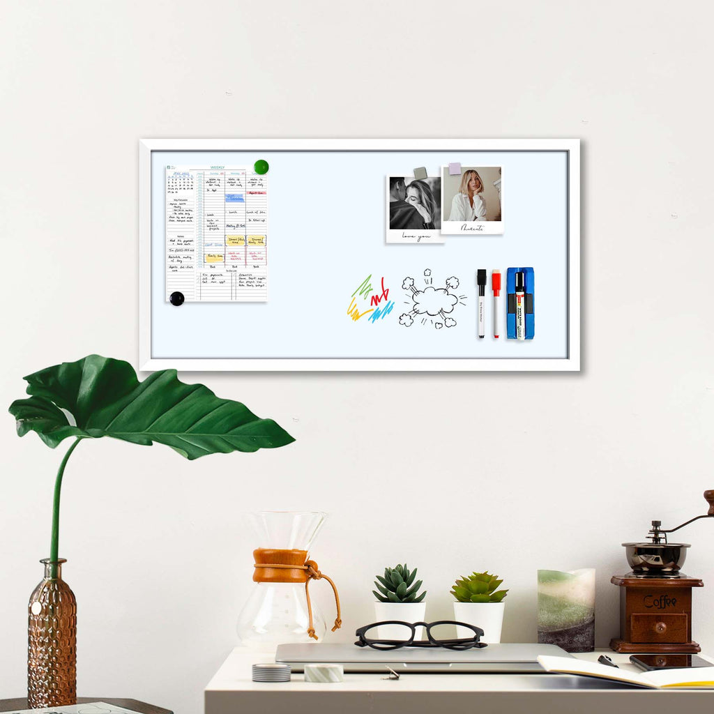 • MATERIAL: Framed magnetic and writeable dry erase board | Gloss surface provides a clear writing surface | Rust & corrosion-resistant