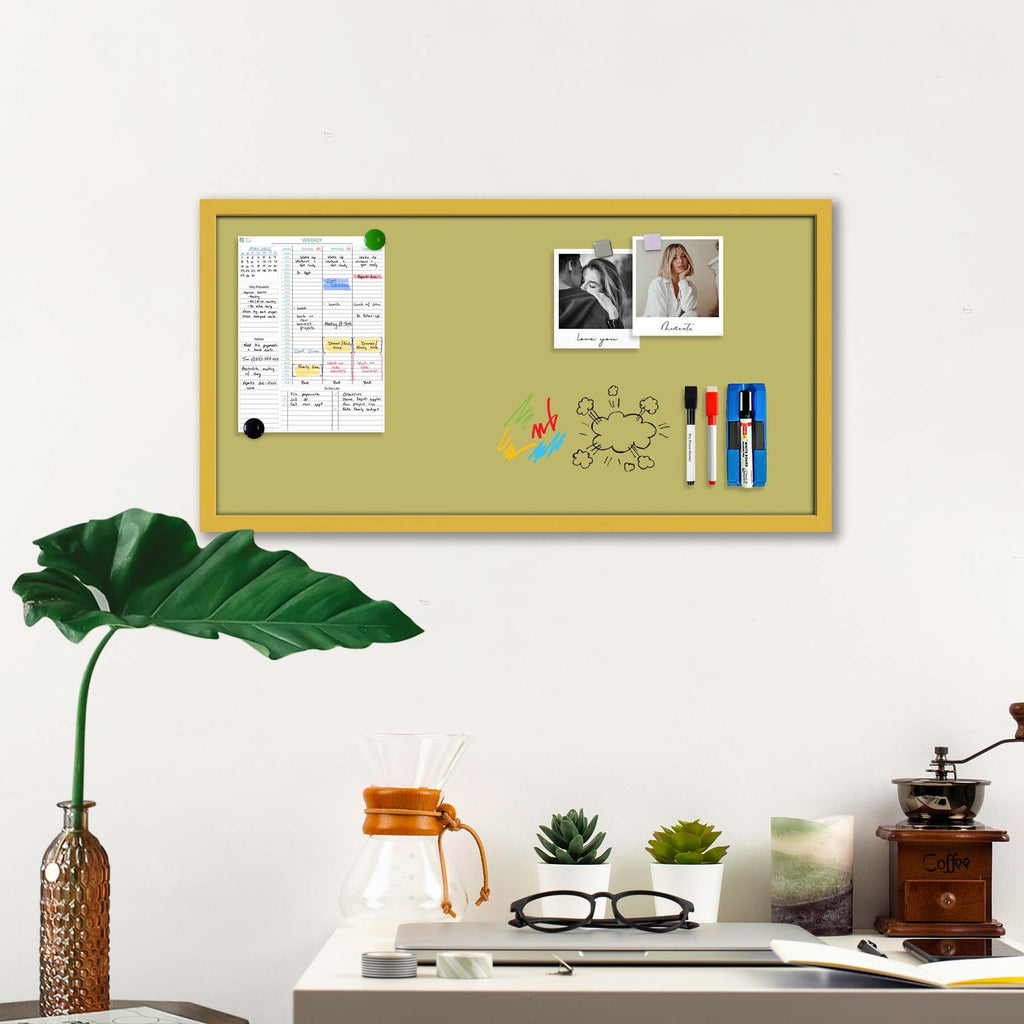 Yellows Family Dark Khaki Colour Framed Magnetic Dry Erase Board | Combo with Magnet Buttons & Markers-Magnetic Boards Framed-MGB_FR-IC 5017428 IC 5017428, Family, Solid, yellows, dark, khaki, colour, framed, magnetic, dry, erase, white, board, includes, magnet, buttons, markers, golden, frame, artzfolio, white board, whiteboard, dry erase board, magnetic board, magnetic whiteboard, small whiteboard, whiteboard for kids, whiteboard for teaching, white board 2x3, whiteboard with stand, large whiteboard, whit